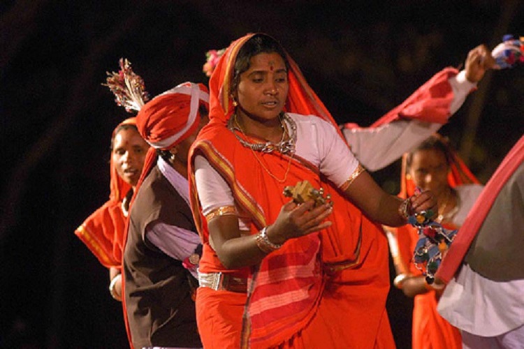 Costumes worn by the Jawara Folk Dance Troupe are colorful and traditional. Women wear bright sarees with tribal jewelry, bangles, and ornaments, while men often dress in dhotis or traditional attire with turbans. Natural colors, mirrors, and handmade accessories enhance the visual appeal of the performance.